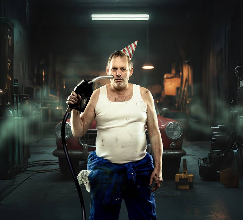 med al dens motorolie, topnøgler og kaffe-på-kanden.